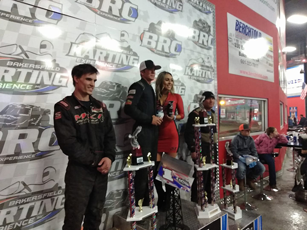 BAKERSFIELD, CALIFORNIA (January 20, 2018) – Tate Sanders wrapped up his inaugural weekend in Outlaw Karts in a big way, scoring the $1000 Bakersfield Indoor Kart Nationals win on Saturday night at Bakersfield Karting Experience. Sanders finished second in Friday’s night preliminary main, then climbed from the B Feature on Saturday to top the 24 car field…
