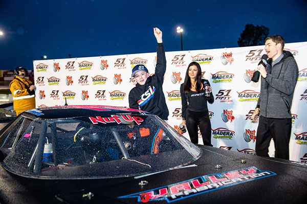 MADERA, CALIFORNIA (March 11, 2019) – With the MAVTV cameras rolling, Dylan Zampa put the West Coast stock car racing world on notice by winning his debut in the Nut Up Pro Late Model Series on Saturday night. The 15 year-old has attracted national attention, outdueling his older brother Logan for the $5,000 win. The…