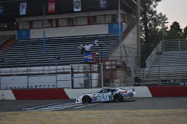 ROSEVILLE, Calif. (August 1, 2020) – Granite Bay’s Cole Moore continued where he left off nine months ago, returning to victory lane in the return of NASCAR Late Model racing to All American Speedway in Roseville on Saturday night. Moore swept the twin 35-lap features as part of a seven main event program, marking the first action at the speedway since November.
