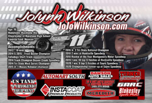 NORTH HIGHLANDS, CALIF. (March 23, 2021) – 17-year-old Jolynn “JoJo” Wilkinson of Hueytown, Ala. has launched a new website designed by Blakesley Sports Media. Blakesley Sports Media also designed a driver autograph card for the Pro Late Model and BMR Drivers Academy participant. The site can be viewed at: www.JoJoWilkinson.com