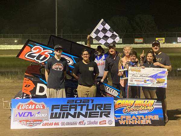 MESA, ARIZONA (June 10, 2021) – Mesa, Ariz.’s Corbin Rueschenberg steered the #26 Driven Chassis to victory lane on Wednesday night in the National Open Wheel Sooner 600 Week, taking the A-Class feature win on the opening night of the five-night event. The victory at Caney Valley Speedway in Kansas makes Rueschenberg one of the…