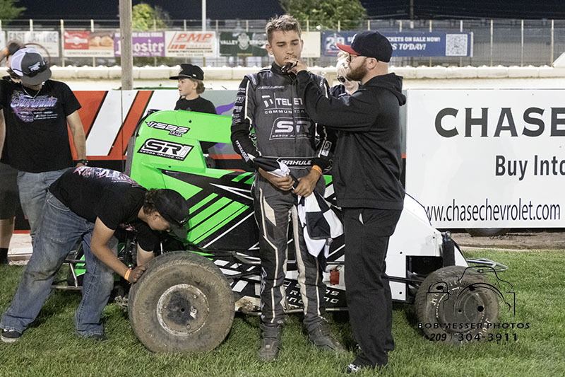 STOCKTON, CALIFORNIA (July 27, 2025) – 15 year-old Kyle Fernandez of Tracy enjoyed his first career Delta Speedway A-Class victory while 13-year-old Johnny Streeter of Thornton made his first ever trip to Delta Speedway victory lane in a fan-friendly round six of the 2025 championship on Saturday night. Photo by Bob Messer Tracy’s Levi Osborne…